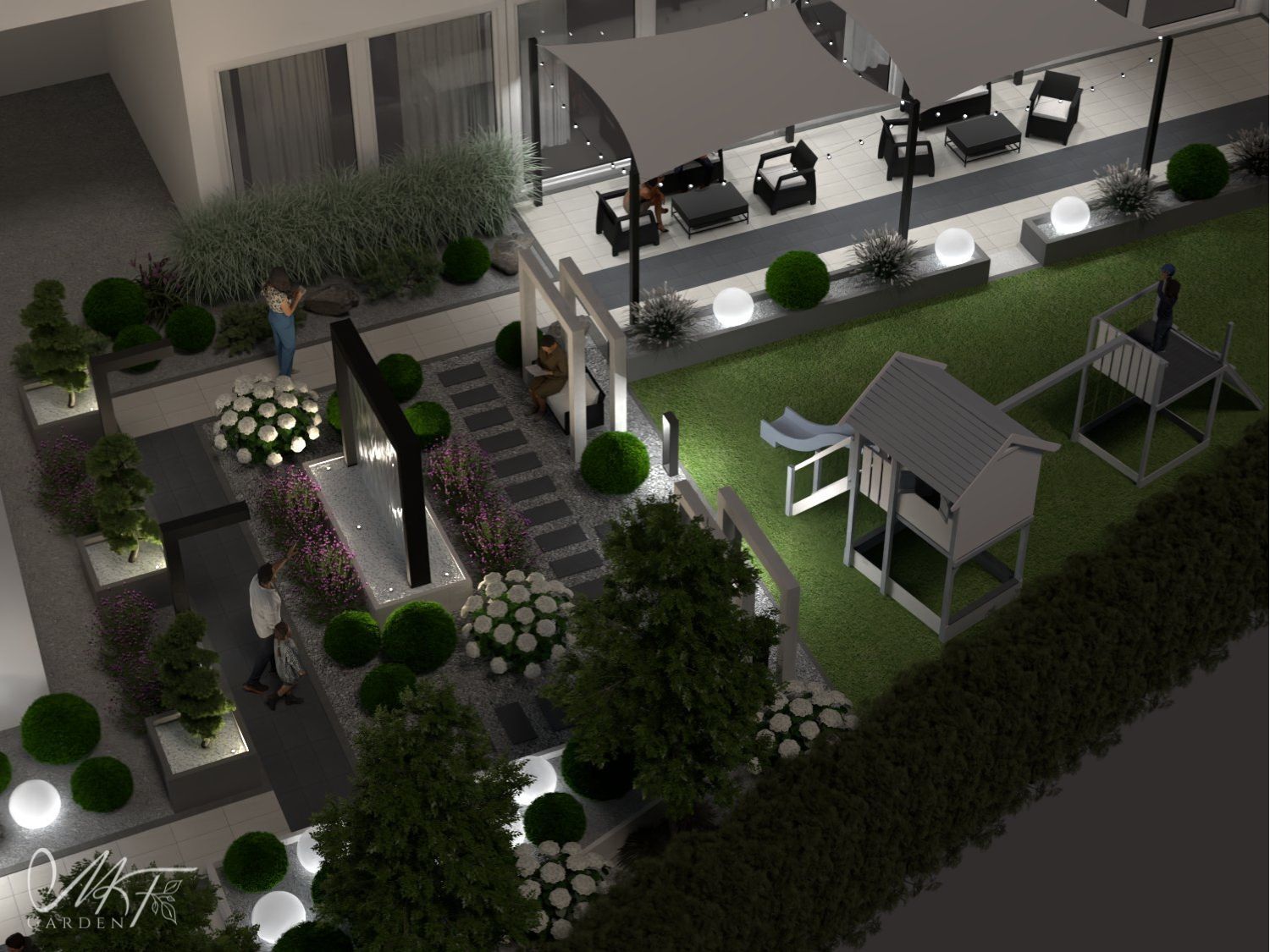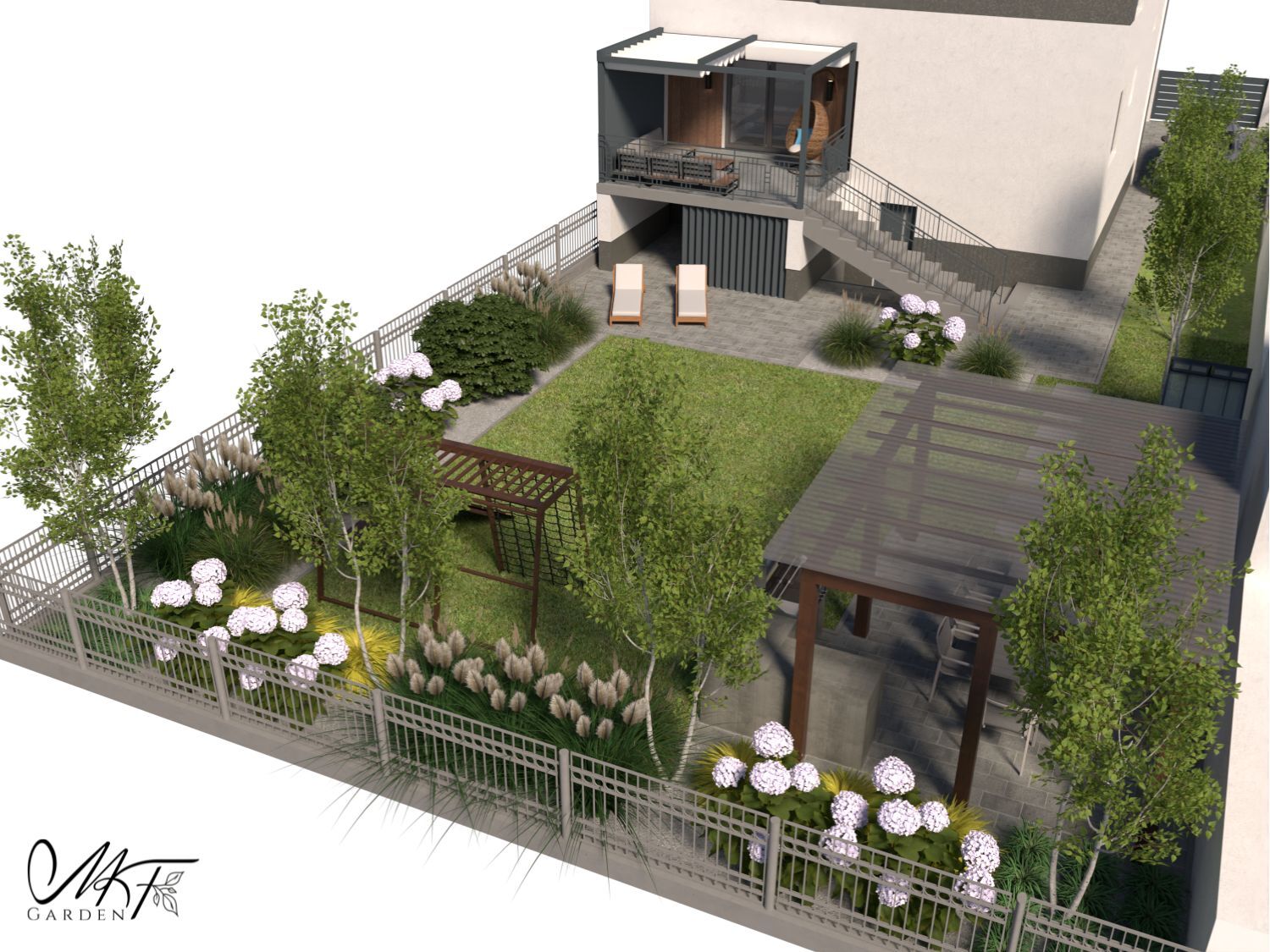 Projekt ogrodu w zabudowie miejskiej. Ogród stworzony z myślą o całej rodzinie, aby każdy znalazł w nim swoją przestrzeń. Trawy w ogrodzie nadadzą lekkość otoczeniu, a zimozielone krzewy ozdobią ogród również w okresie zimowym. Cała przestrzeń została zasłonięta ogrodzeniem maskującym, dzięki czemu teren nabierze prywatności.