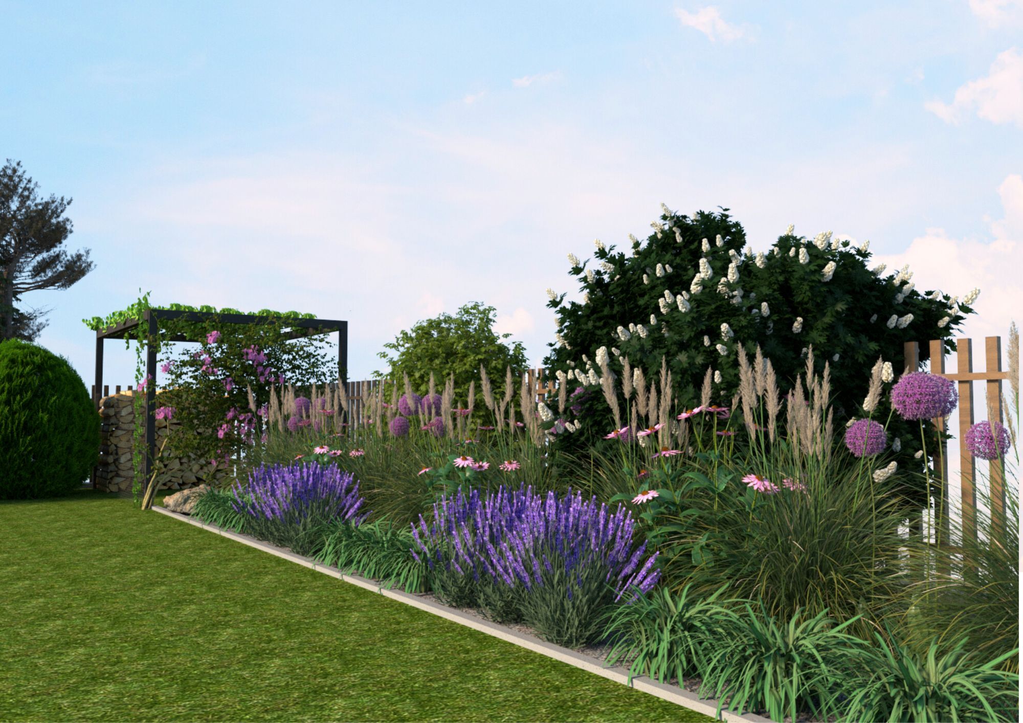 Swobodna rabata pełna życia. Naturalne formy tworzą dynamiczną, a jednocześnie harmonijną przestrzeń.